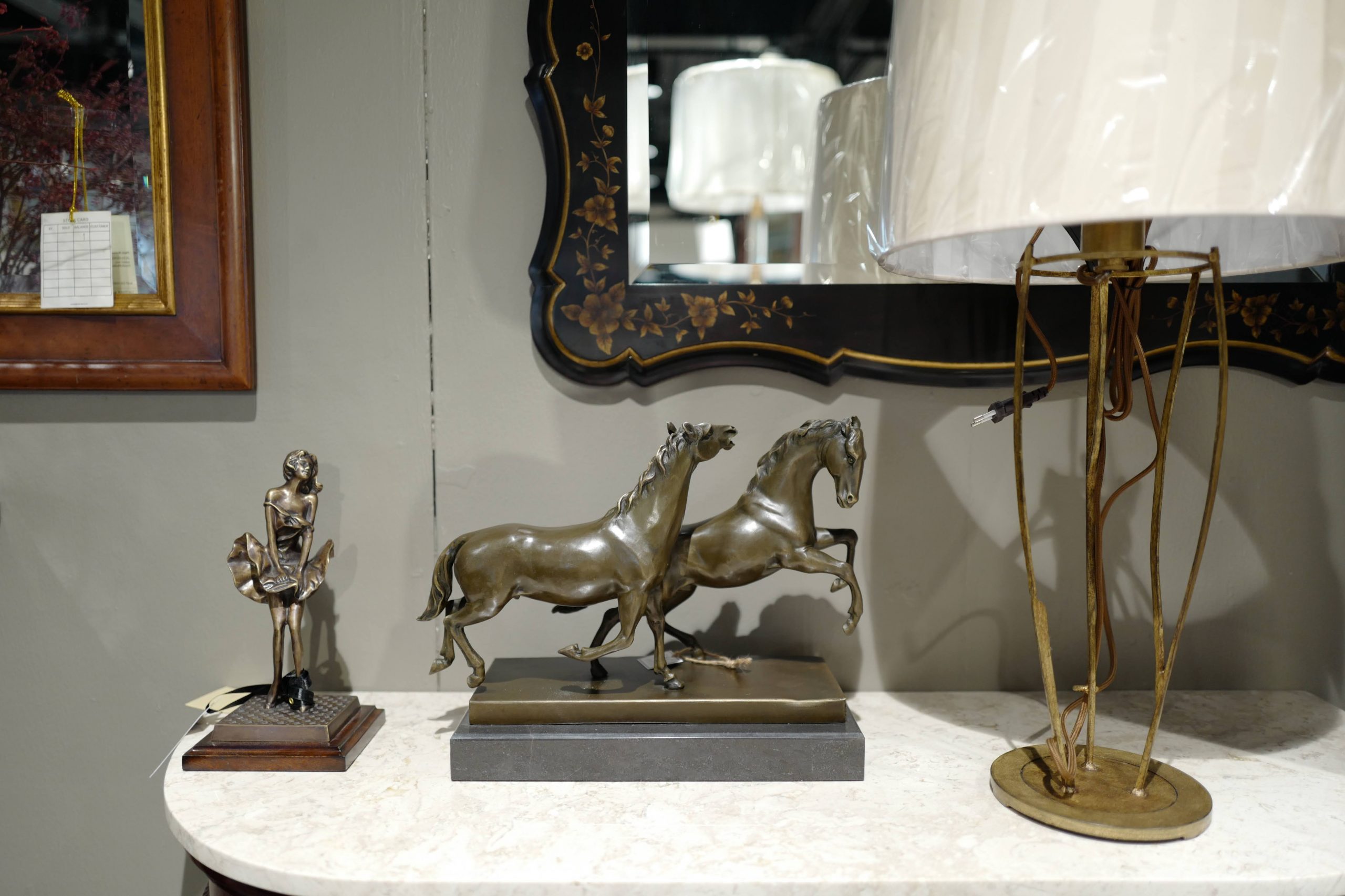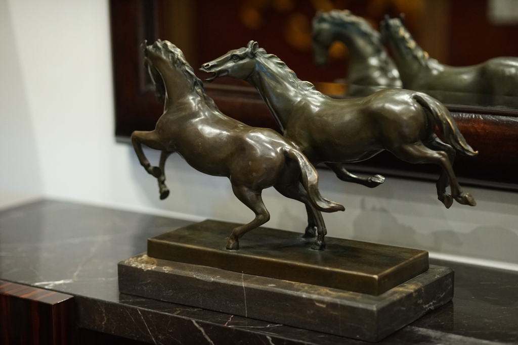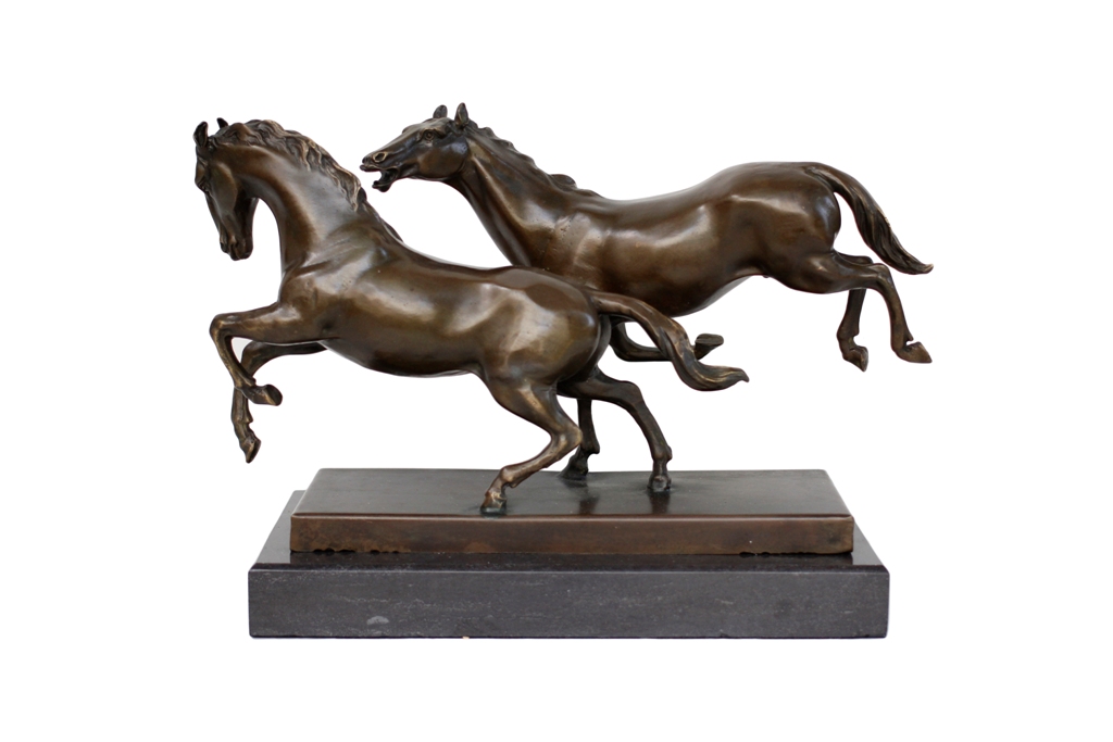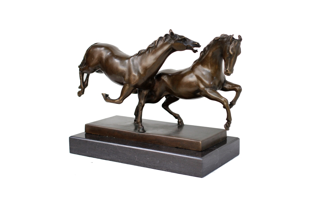 Products > Antique Brass Double Horse on Marble Base