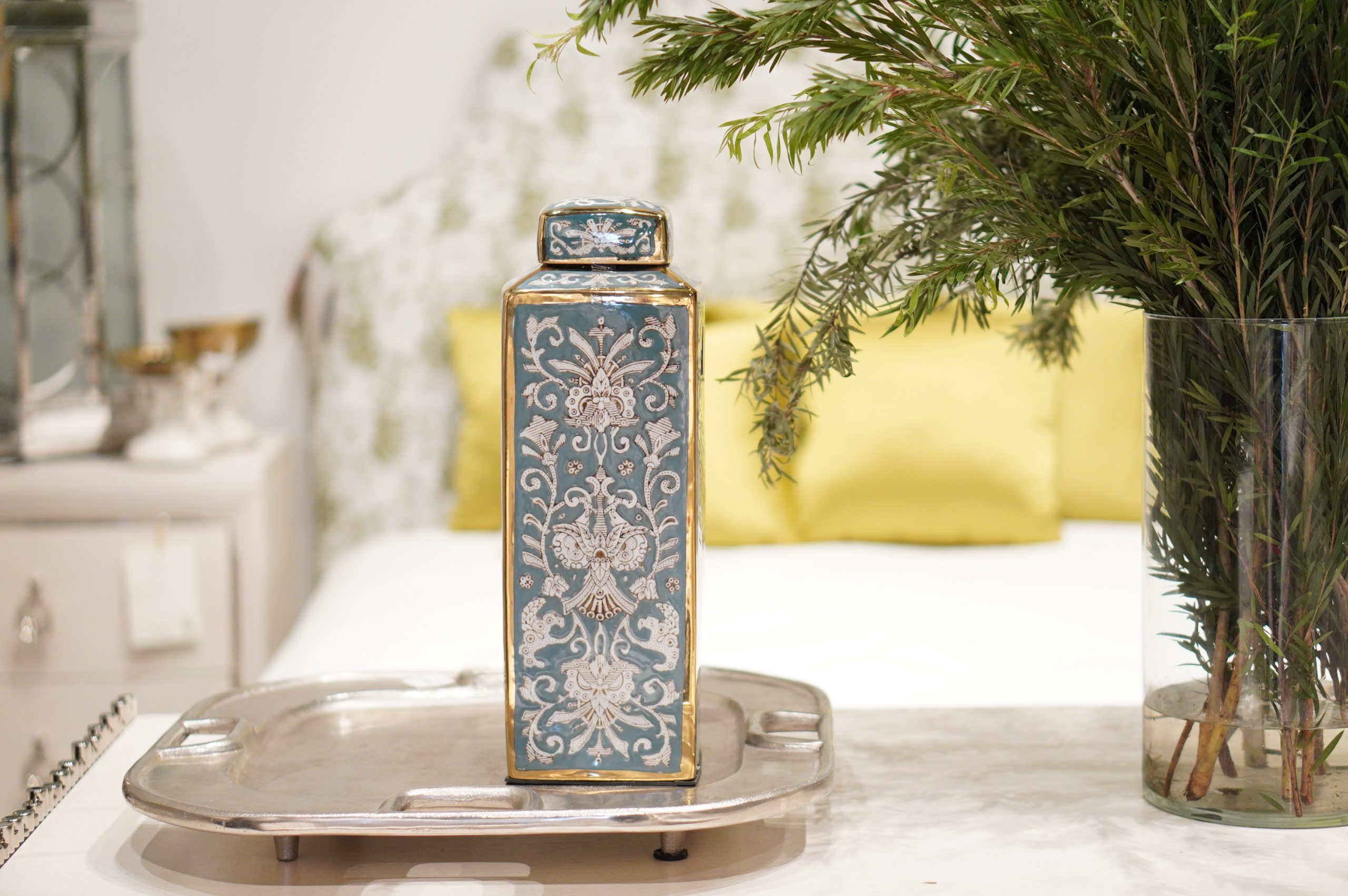 • Decorative Blue & White Ceramic Canister (S)
