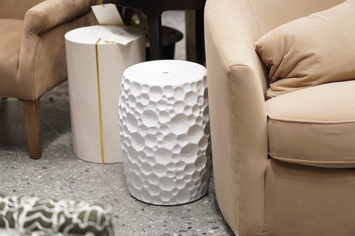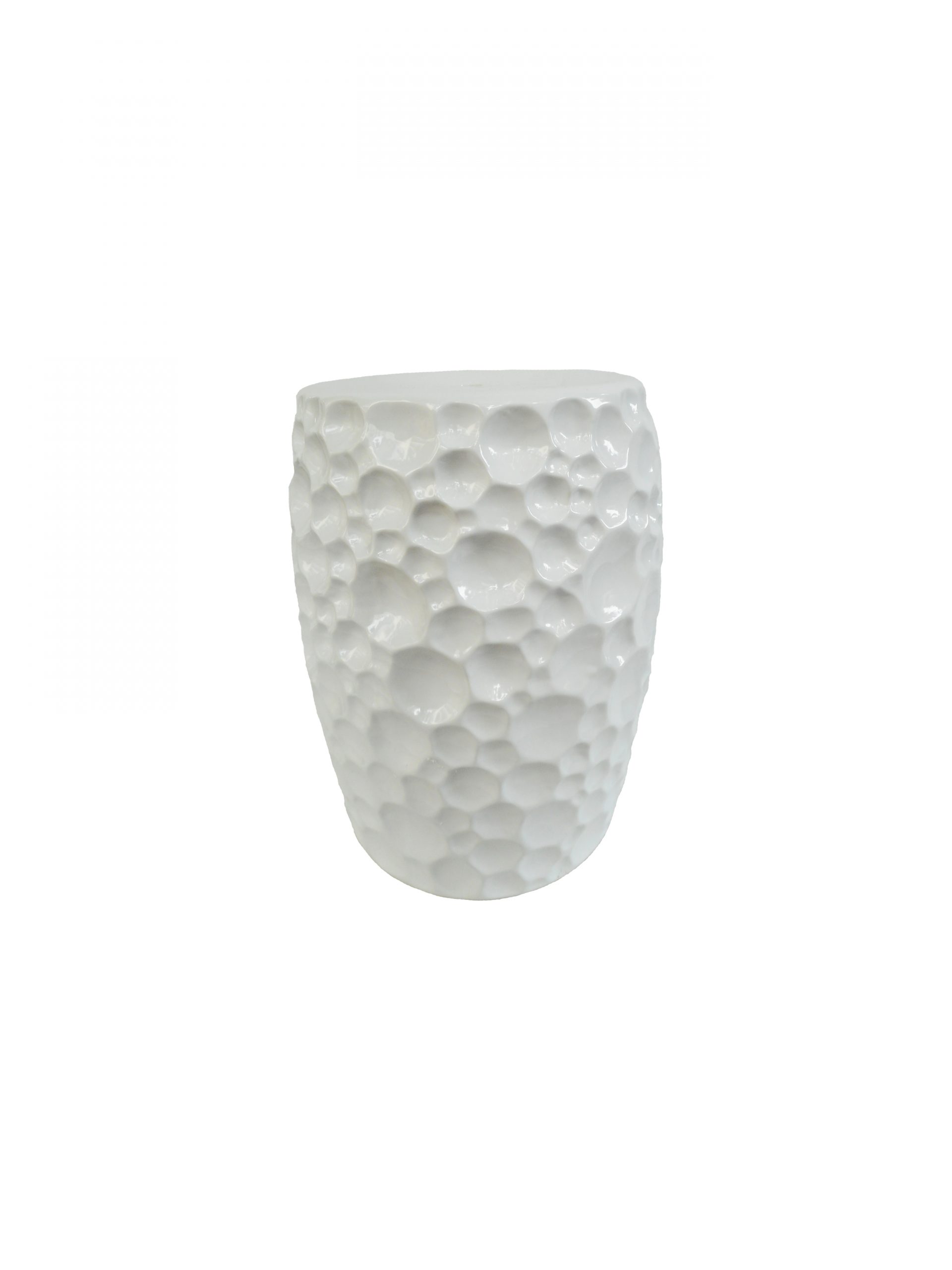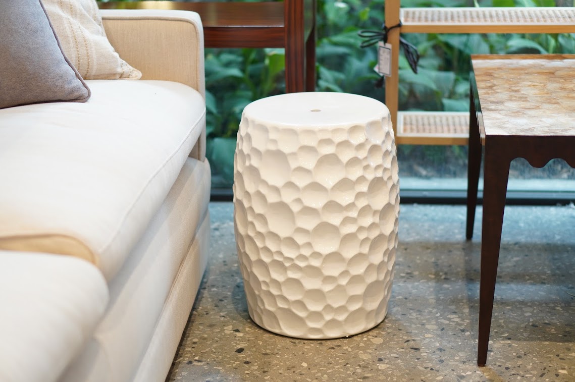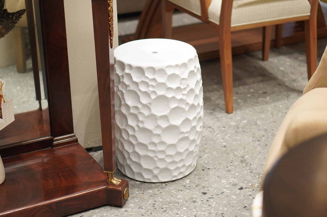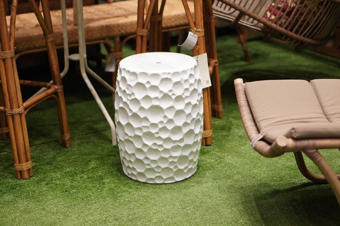 • White dotty ceramic garden stool