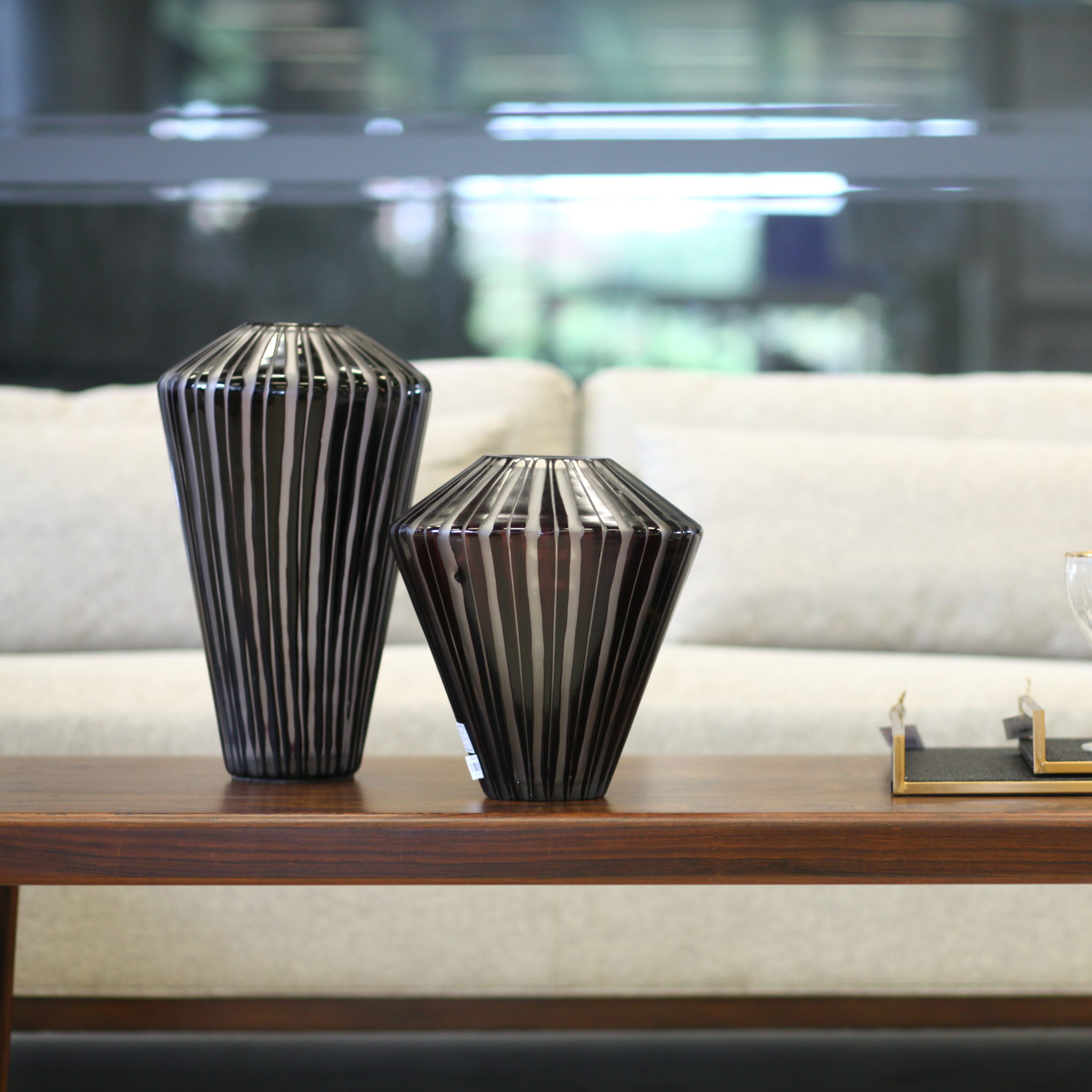 Products > Black and White Stripe Glass Vase (S)