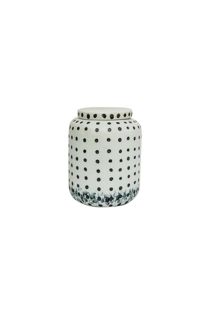 Products > Black Dotty Ceramic Jar with Lid