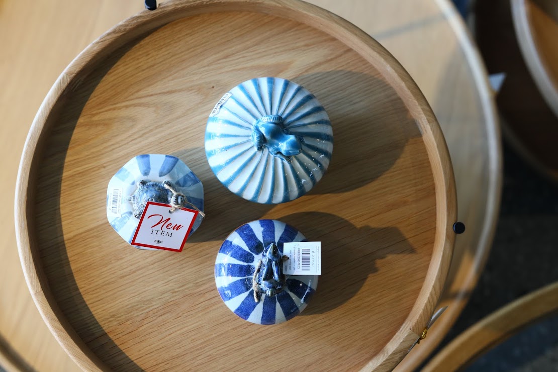 Blue Frog Stripe Ceramic Jewelry Box