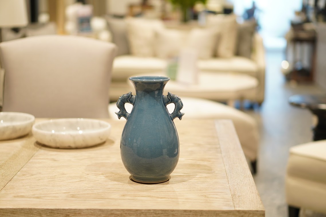 • Light Blue Ceramic Vase with Crystal Base
