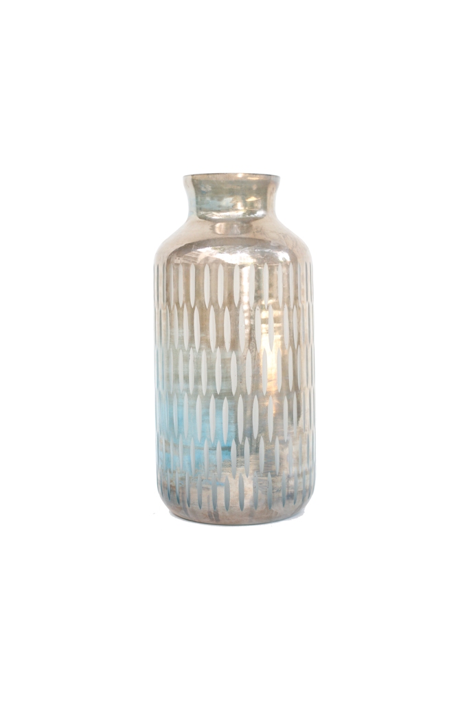 • Decorative Glass Vase with Silver Trim (L)