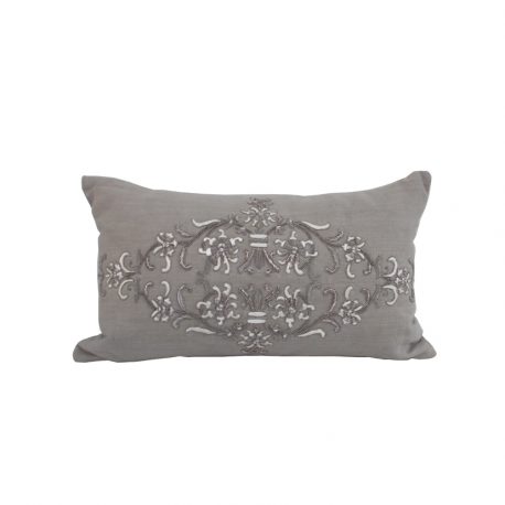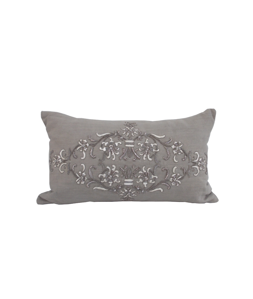 Products > Hand Embroidery Flower on Grey Linen
