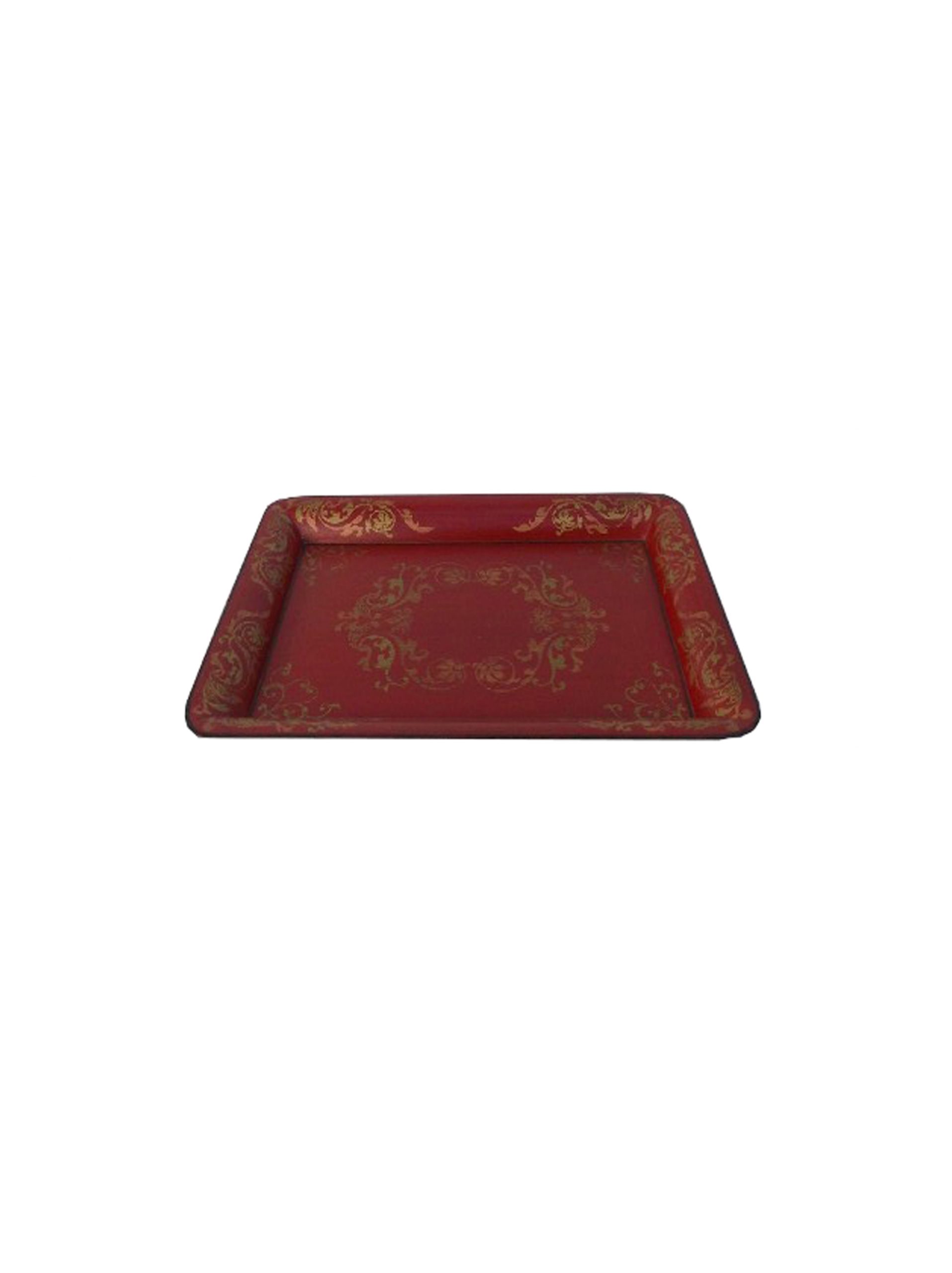Products > Hand Painted Chinoiserie Tray in Red