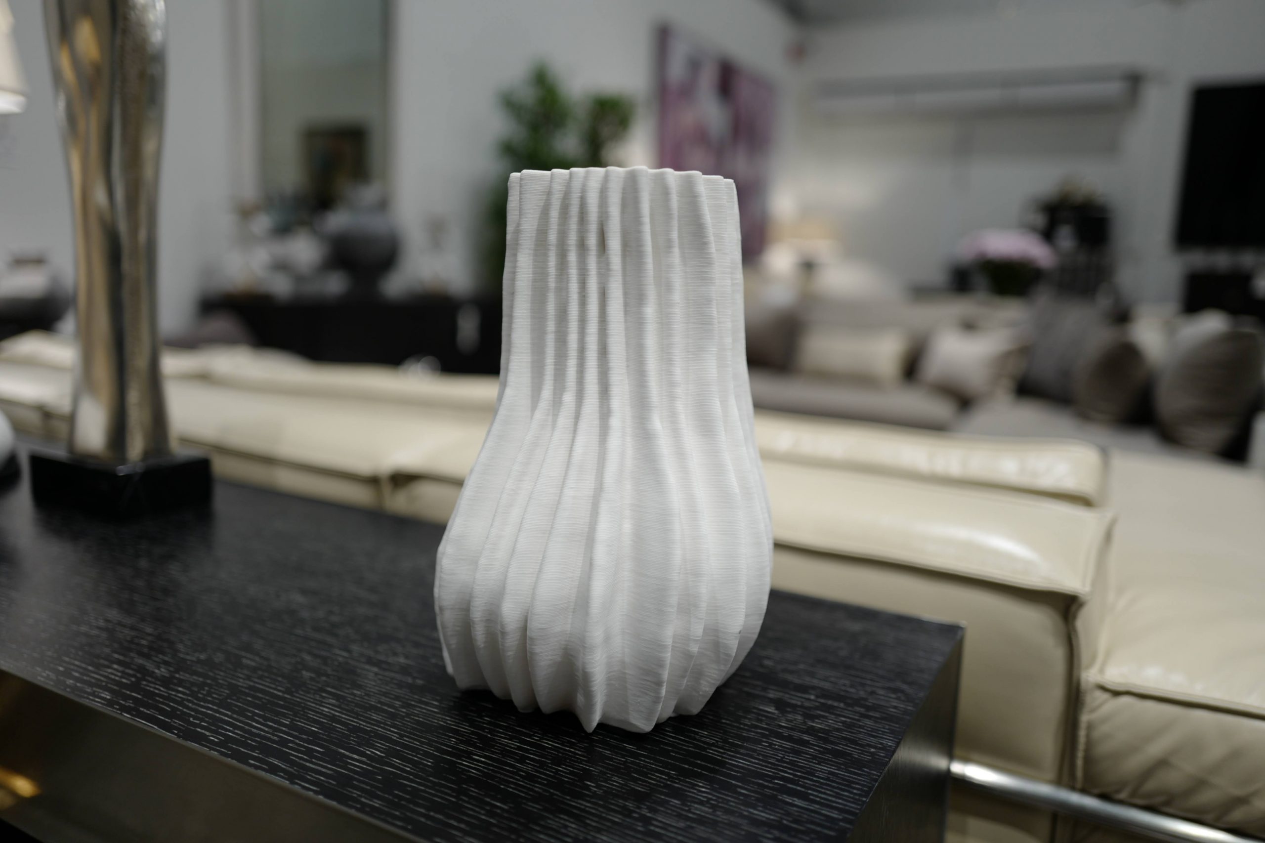 • แจกันสีขาว เท็กซ์เจอร์เป็นสันเหมือนลูกฟูก