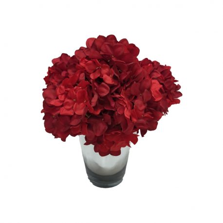 Products > Red hydrangea arrangement in silver glass vase (S)