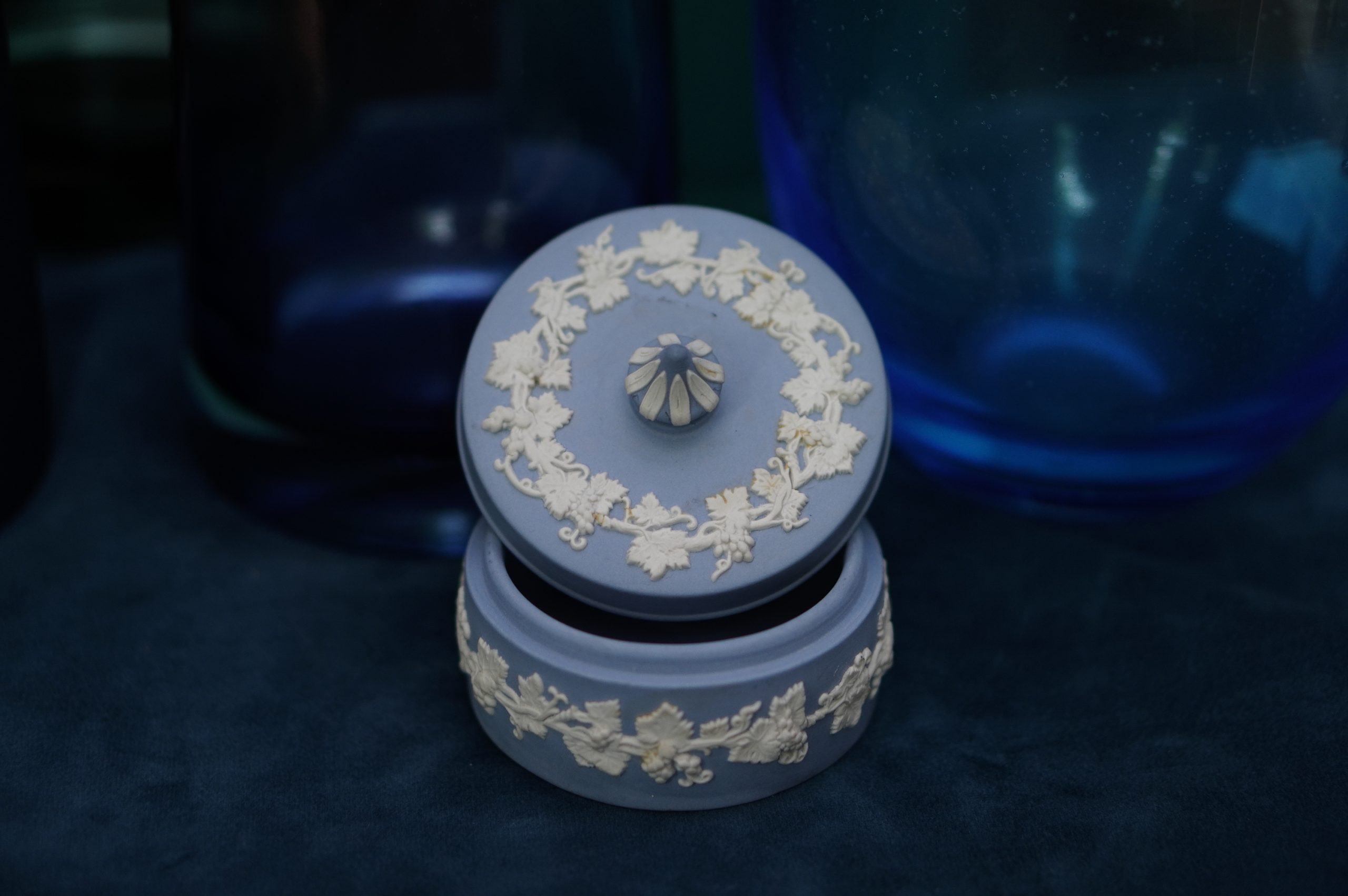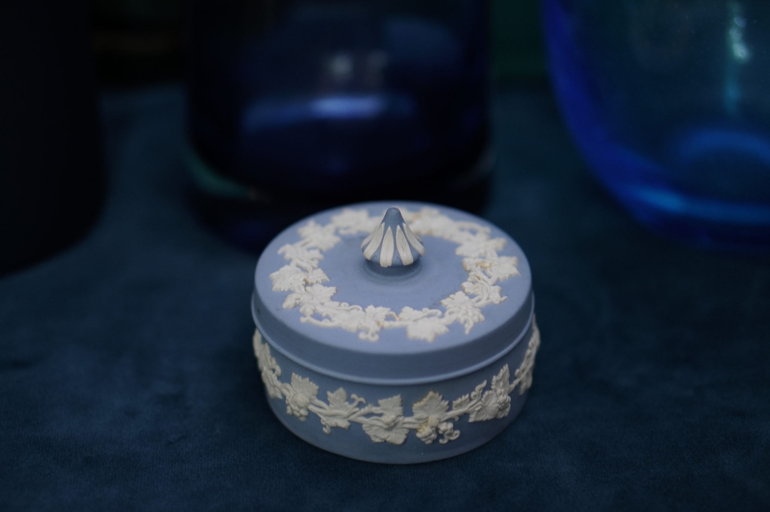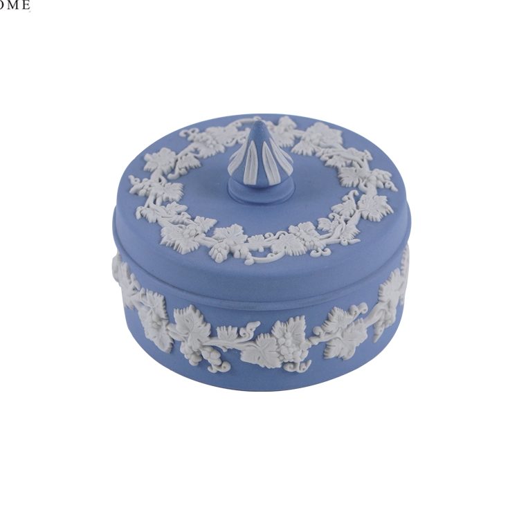 Wedgwood Blue Jasperware Round Vines Spiked Lidded Box (L)