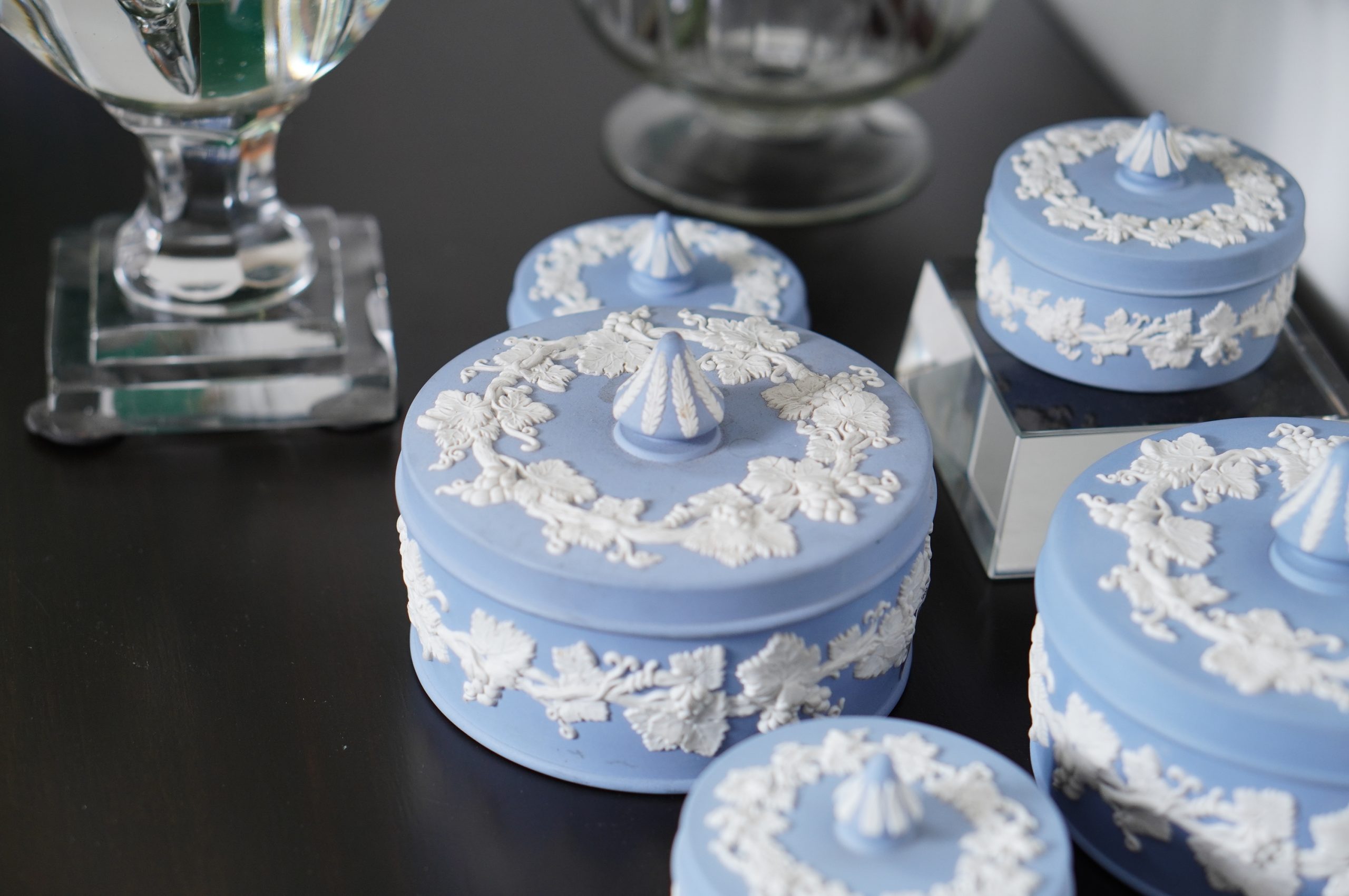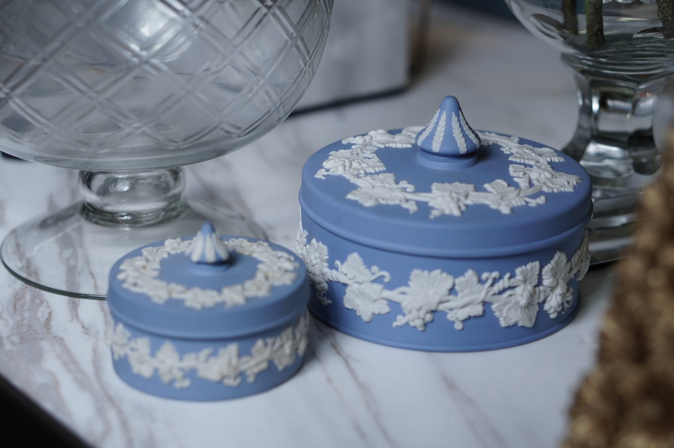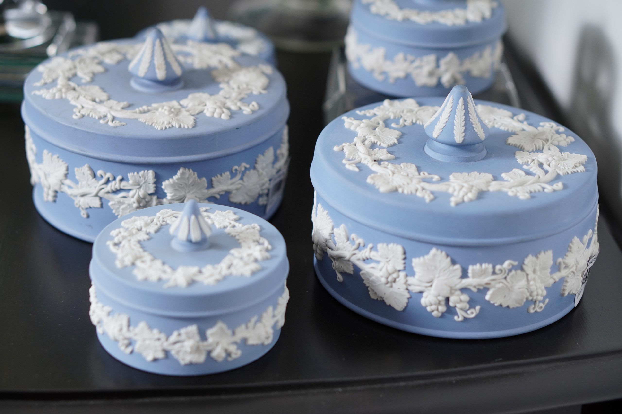 Wedgwood Blue Jasperware Round Vines Spiked Lidded Box (L)