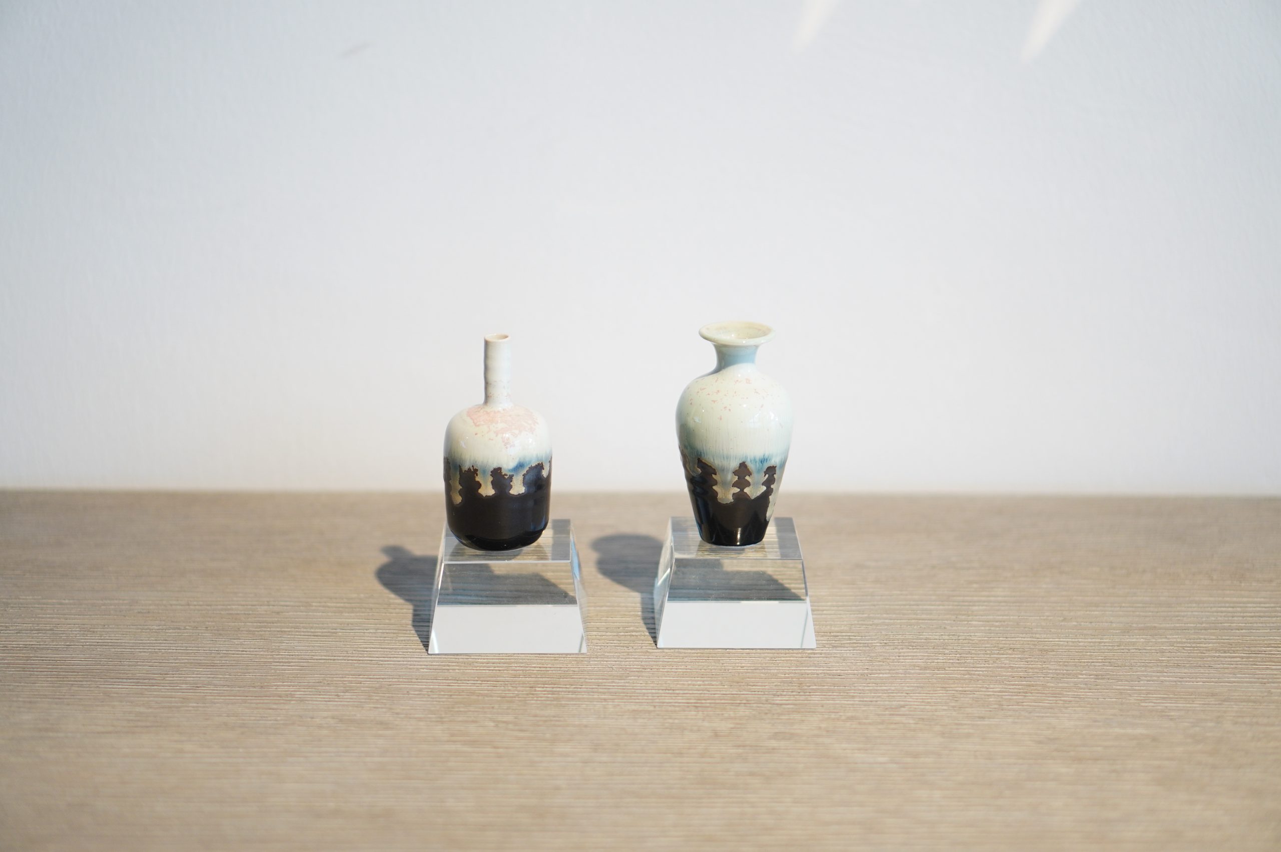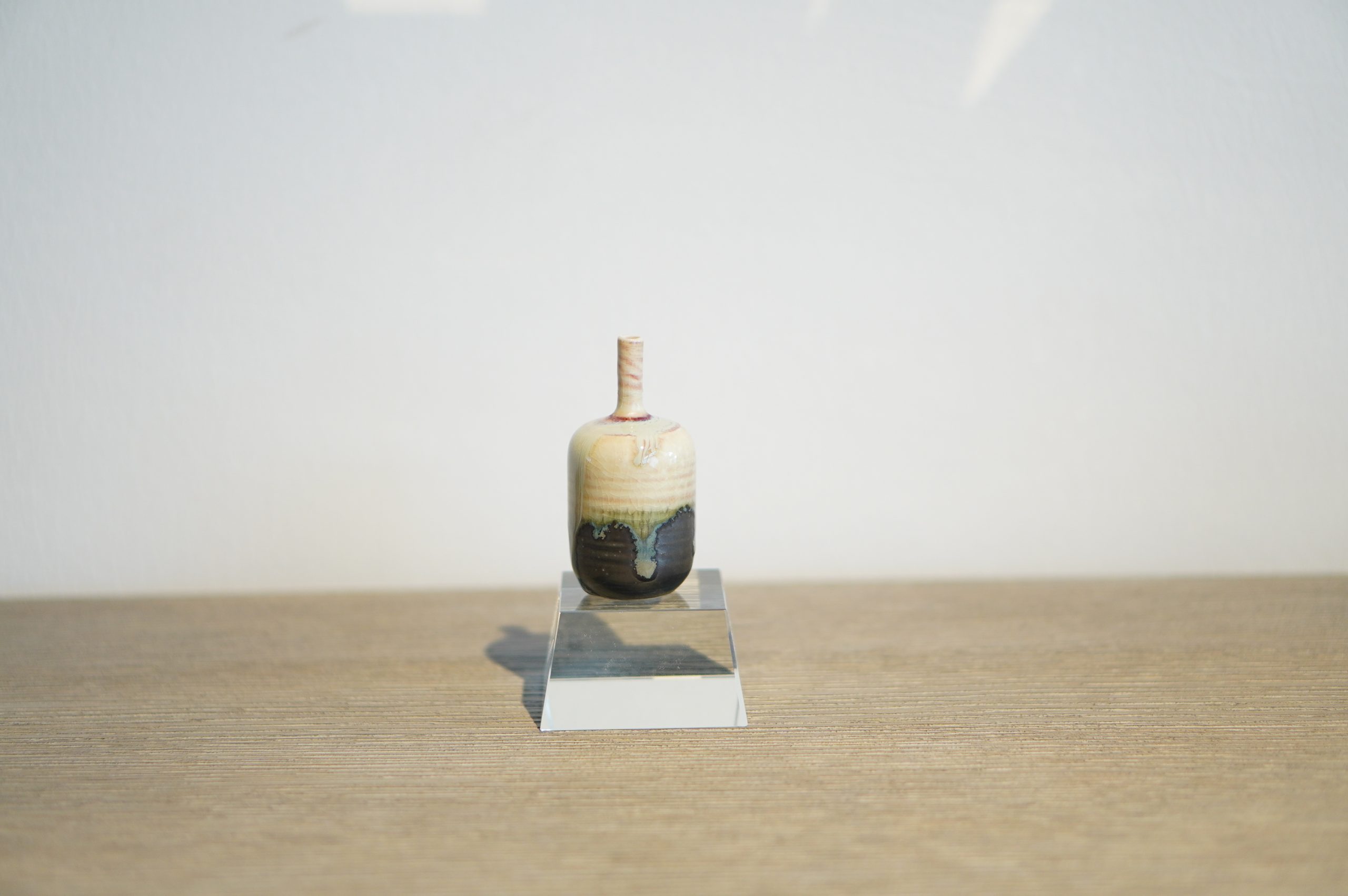 White Brown Gazed Ceramic Vase with Crystal Base