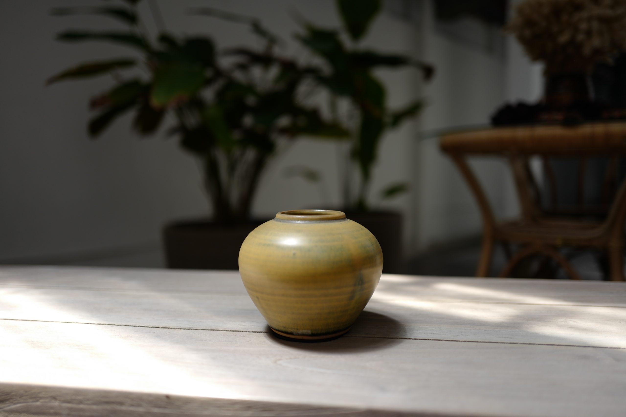 Yellow mustard ceramic vase